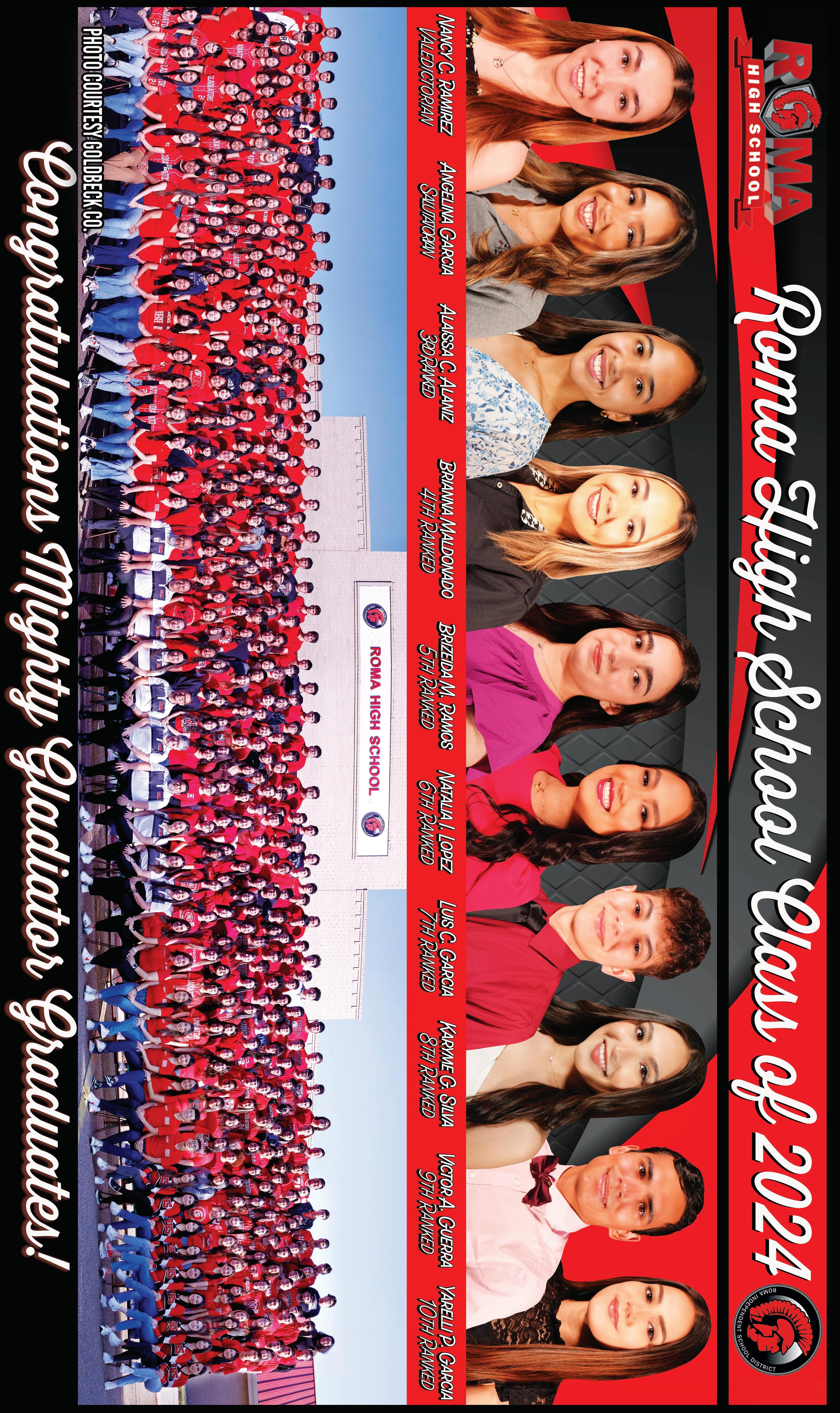 STARR COUNTY TOWN CRIER, MAY 29, 2024, PAGE 2 Sanchez (956) 487-2525 Funeral Home 301 E. 2nd. St. Rio Grande City, Tx. 78582 (956) 847-7008 Memorial Funeral Home 101 AR Sanchez Sr. Dr. Roma, Tx. 78584 “Serving Our Community For Over 86 Years” “Caring for you & your loved ones in your time of need ” $2,900.00 FULL FUNERAL SERVICE CALL JEFF OR SONATA SANCHEZ WITH SILVER METAL CASKET Sanchez The leadership of the Rio Grande City, Texas Rio Grande City High School graduating class of 1984 is proud to announce that Ms. Violet Aileen Vela - Class of 2024 is awarded this year’s RGC High School Class of 1984 Memorial Scholarship. Violet is the daughter of Kino and Sylvia Vela. Violet plans to attend the South Texas College Nursing and Allied Health Campus and UTRGV Majoring in Nursing. The memorial scholarship has been awarded since 1993 in honor and memory for classmates and class sponsors who have passed on. Applicants (Seniors) for the scholarship must demonstrate an economic need, be active in community/public service and possess an overall C+ average (2.5 or higher) based on a 4.0 scale. Awardees draft an essay on what the meaning of being a “Rattler” means to them. Essays are reviewed and selected by the scholarship trustees. Class of 1984 alumnus and friends of the Class of 84 annually contributed financial support to this local endeavor. The Rio Grande City High School Class of 1984 wishes all the best to the Rio Grande City Class of 2024. “May you ever live in Glory and win in all you do” ~ RGC High School Alma Mater.