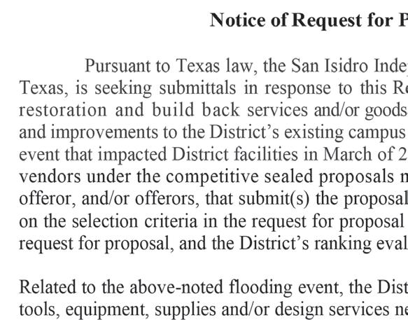 Deadline for Proposal Submission: May 21, 2025, For detailed RFP documents and submission guidelines, visit: www.co.starr.tx.us For inquiries, please contact: Ms. Reyna Guerra Starr County, Texas 100 N. FM 3167 Rio Grande City Texas, 78582 Email: rguerra@co.starr.tx.us