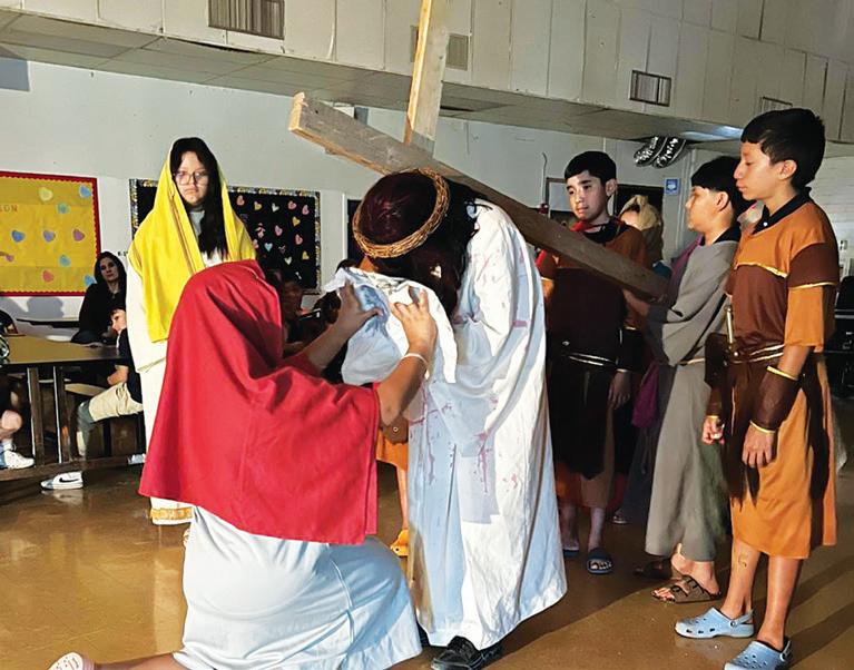ICS students did an reenactment of “The Way of the Cross”. In this photo you see Veronica wiping Jesus’ face. Characters being portrayed: Mary (Inez Garcia), Veronica (Galilea de la Torre), JESUS (Everardo Cortez), Simon (Isaias Blanco), Roman Soldiers (Michael Bazan), (Josiah and Jocab Gonzalez).
