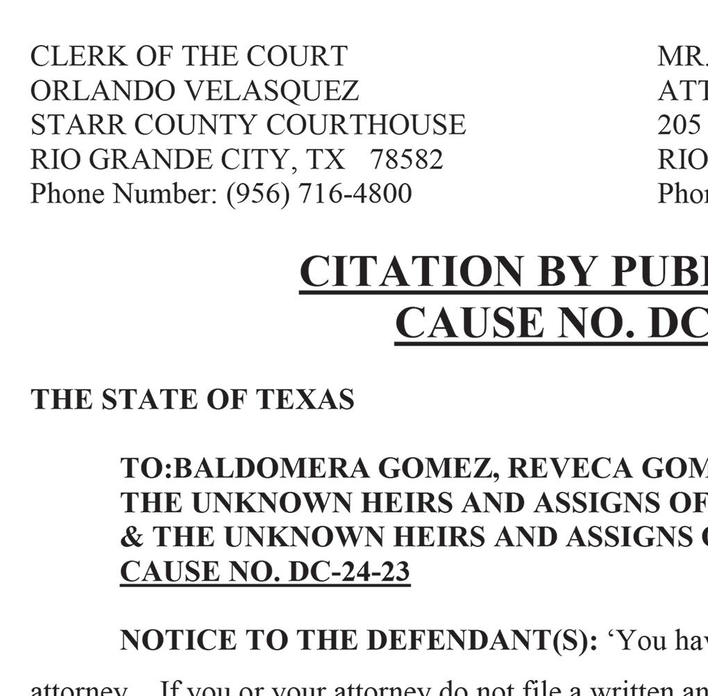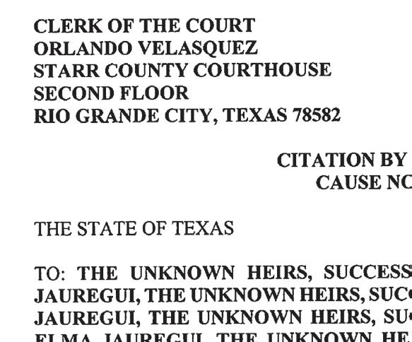 RIO GRANDE CITY CONSOLIDATED INDEPENDENT SCHOOL DISTRICT, CITY OF RIO GRANDE CITY, SOUTH TEXAS COLLEGE AND STARR COUNTY VS. THE KNOWN AND UNKNOWN HEIRS OF SOTERO LARA, AKA SOTERO LARA TREVINO (DECEASED) AND ANY OTHER KNOWN OR UNKNOWN PERSON HAVING A CLAIM AND/OR INTEREST TO THE PROPERTY