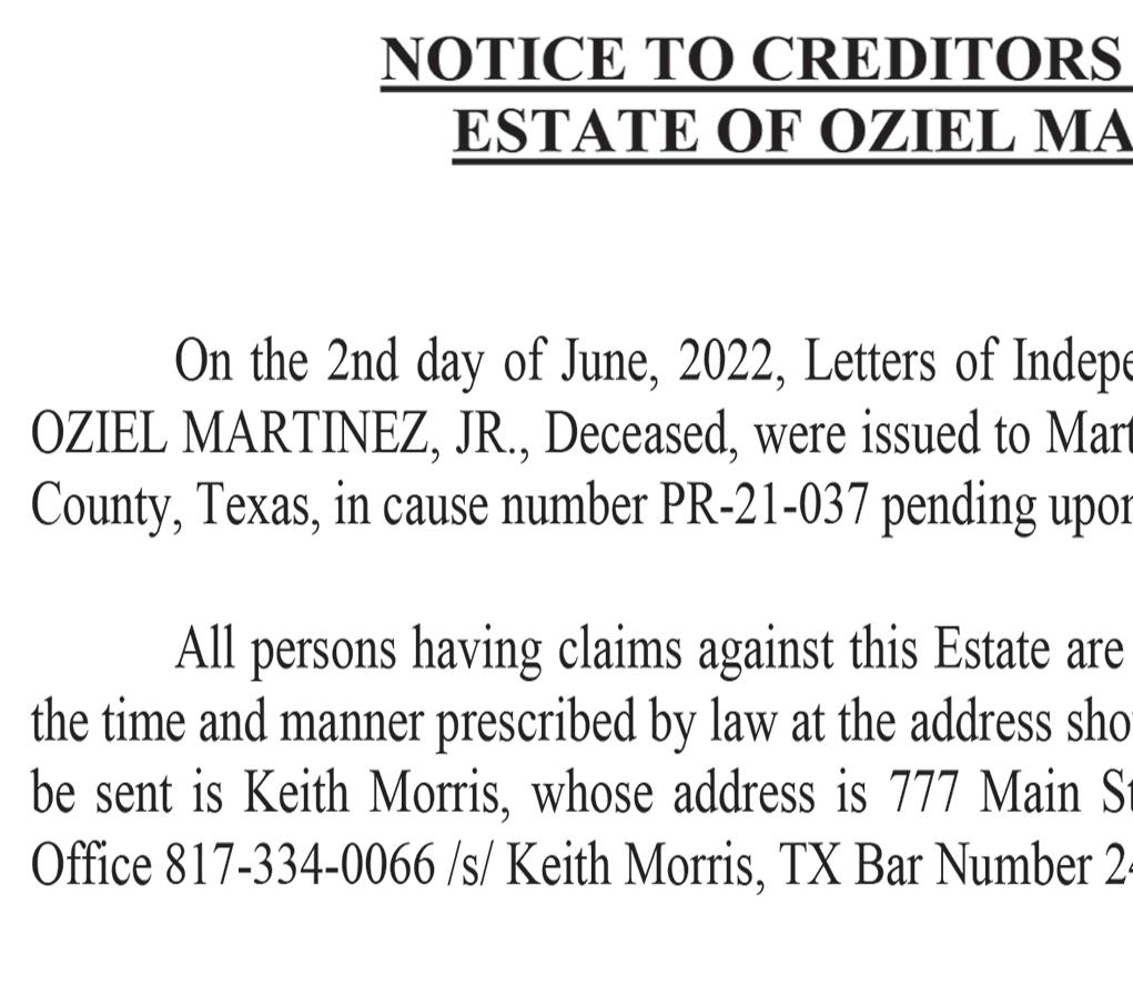 Abandoned Motor Vehicle Act, we are serving notice to the owners and/or lien holders that the below described motor vehicle, has been taken into custody by Triple J Wrecker Service, and will be sold. Failure of an owner or lien holder to claim vehicles within thirty (30) days after date of this notice and make payment of all towing, preservation, and storage charges resulting from the placing of vehicles in custody shall constitute a waiver of the right to reclaim vehicle. Contact Juan J. Lopez, Jr. at 956-735-5144, 6511 E. US Hwy 83, Unit A, Rio Grande City, TX 78582 for information concerning vehicles.
