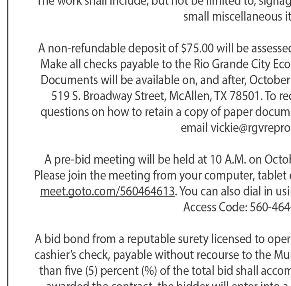A pre-qualifications conference will be held on October 27, 2022 at 10:00 a.m. at the STC Purchasing Department, 3200 W. Pecan Blvd., Bldg. N, Conference Room 142, McAllen, Texas. All prospective parties are encouraged to attend.