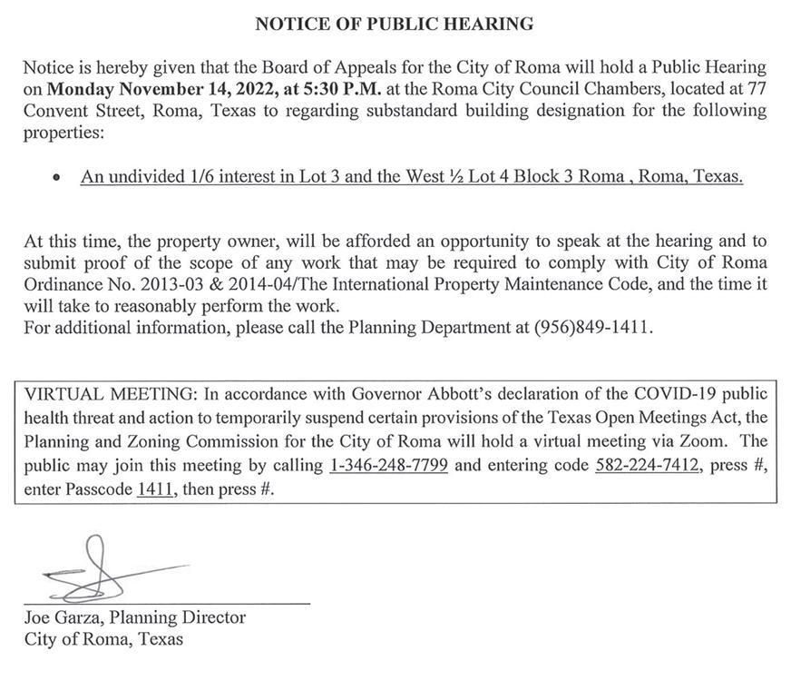 ¿Necesitas ayuda de PROVIDER en tu casa, o conoces a alguien que necesita PROVIDER? HABLEME: OMAR REYES (956) 533-9001CONSULTA GRATIS Pero, tienen miedo a pedir por temor de perder su propiedad. Sabia que existen cosas a su favor para que eso no suceda. Cristina Vargas (956) 500-0101 Yaritza Gomez (956) 422-1980 OCTOBER 19, 2022 PAGE 20 3G’s AIR CONDITIONING EPA Certi ed Technicians • Lic#TACLB023317C FREE ESTIMATES • ALL MAJOR CREDIT CARD ACCEPTED (956) 317-1099 • (956) 263-1770 Your Rheem Pro Partner in Rio Grande City 0% FINANCING AVAILABLE FOR 36 MONTHS WITH APPROVED CREDIT INTEREST $AVE ON YOUR ELECTRIC BILL!!! UP GRADE TO MORE EFFICIENT UNITS SERVING STARR COUNTY SINCE 2003 YOUR ONLY STARR COUNTY RHEEM PRO PARTNER 2 TON-$2,730 2 1/2 TON $2,940 3 TON $3,050 3 1/2 TON $3,175 4 TON $3,475 • 5 TON $3,800 HURRY PRICES GOOD FOR A LIMITED TIME 10 YEARS PARTS WARRANTY - IN ALL NEW INSTALLATIONS NOW HIRING Roma Rio Grande City RMcAllen oma City McAl en Le Podemos LAydar! e Podemos Aydar! Ad V Yl L Dp S (956) 370 (0070 956) 370 0070 Llame Para Renovar Medicare? Medicare? Arroyo:5065 Hwy. 83 ste. A - 956-570-0702 RGC: 4370 E. Hwy 83 Ste. B - 956-309-3549NOW OPEN NOW OPEN Roma: 834 E. Grant St. Ste. C - 956-570-0701 Escobares: 4522 East Hwy 83 Ste A. 956-429-5625 Penitas - 1715 Expressway 83 Suite A-2 Penitas Tx- 956-424-0133 103 W. 2nd Street Rio Grande City, Tx 78582 956-488-0160 You’re in good hands. Auto • Home • Business • Life Hablamos Español The Roma Arts and Culture Committee and the City of Roma announced
