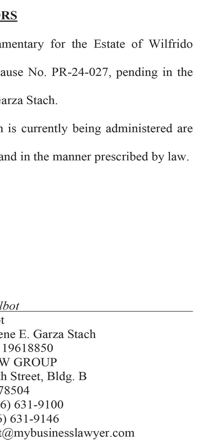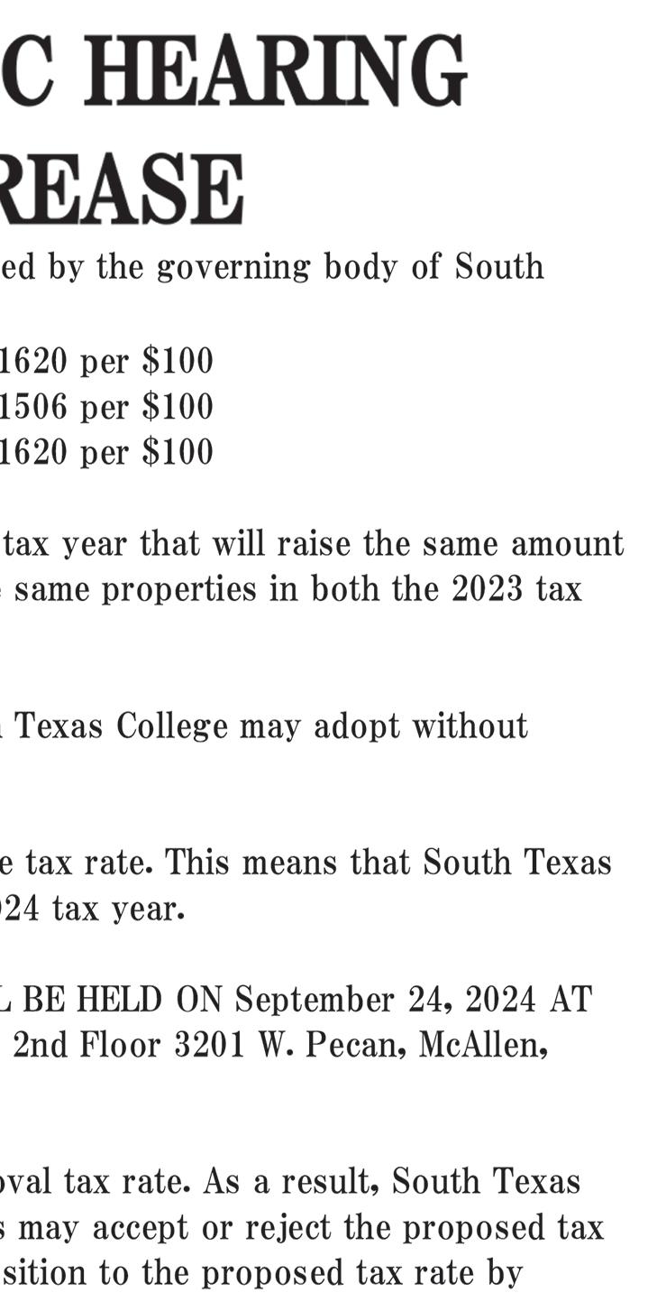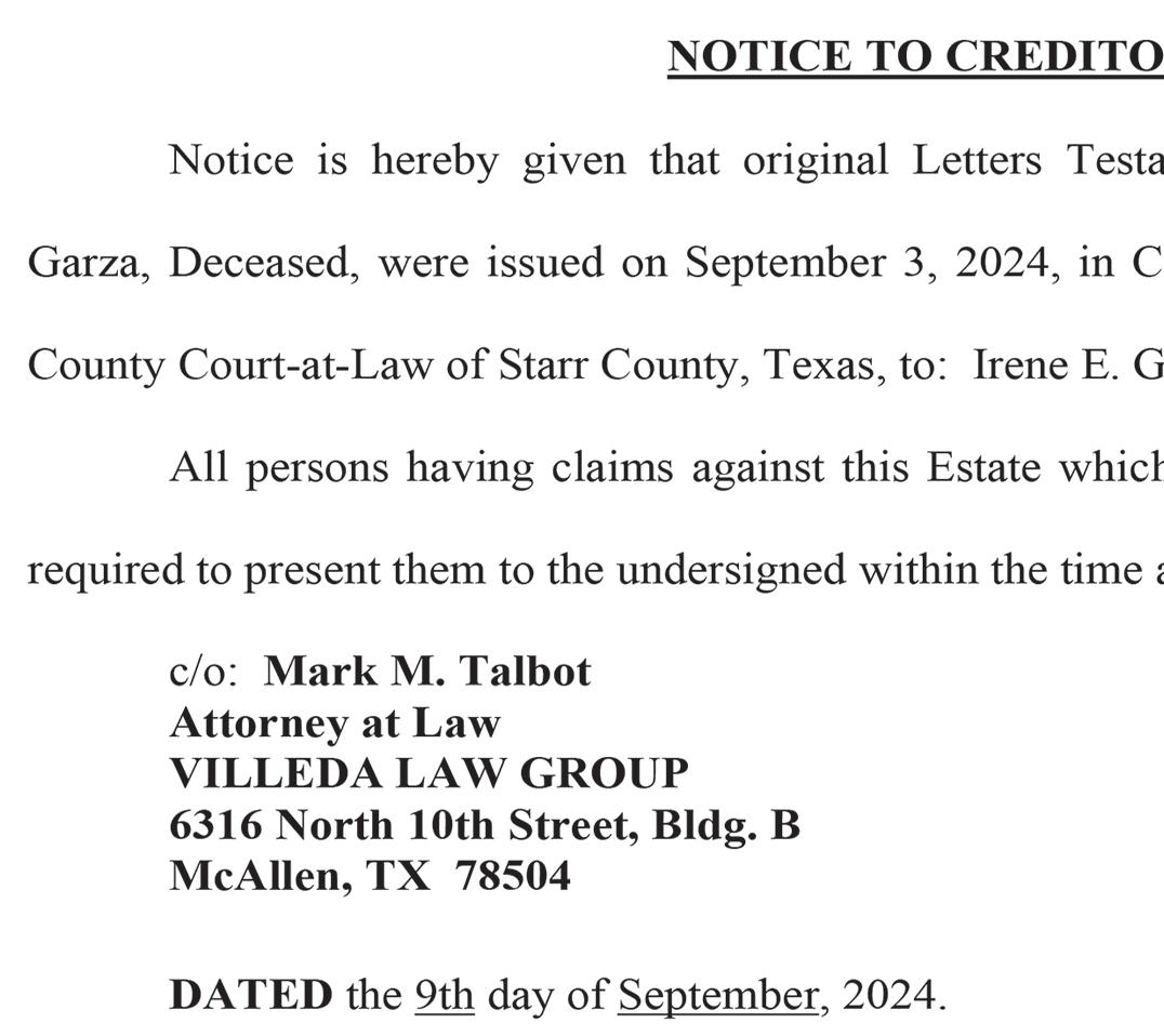 Notice is hereby given, pursuant to Chapter 263.153 of the Texas Local Government Code & Chapter 59 of the Texas Code of Criminal Procedure and Transportation Code 683, Subsection B, 683.012, of the Texas Department of Transportation that the County of Starr Sheriff ’s Office, Rio Grande City, Texas will hold a public auction on Saturday, September 28th , 2024, at 10:00 a.m. for General Surplus, Equipment and Vehicles which have been forfeited to the State of Texas under the provisions of Chapter 59 Texas Code of Criminal Procedure. Location: 2101 I-69C, Edinburg, TX 78542. Registration to bid will be from 8:00 a.m. to 10:00 a.m. and will require a picture identification. Examples of items to be auctioned are cars, trucks, heavy equipment, personal computers, electronics, office furniture, surplus, etc. All items will be sold “As Is - Where Is” to the highest bidder. Onsite Buyer’s Premium 14%, Internet Buyer’s Premium 16%. All sales are final and must be paid on the same day with cash, major credit cards (Visa, Master Card, Discover, American Express), Debit & Credit with a 3.99% processing fee. Checks accepted “day of auction” only with certain conditions. For additional information, please contact the County of Starr Sheriff ’s Office, at (956) 487-5571. AUC#17532 - Jose A. Camarillo