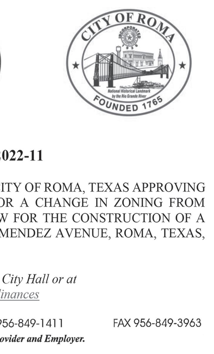 487-2440 300 East Main St. R.G.C. STARR VISION CENTER Dr. Angie Ramirez erapeutic Optometrist 488-0808 280 W. 2nd St. R.G.C. CASTAÑEDA Auto Insurance & Bail Bonds 487-7000 487-2596 4350 E. US HWY 83 R.G.C. • Individual • Partnership • Corporations • LLC’s • Bookkeeping • Payroll • Financial Statements • Form 2290 • IRS Audit Representation Mario A. Méndez, EA Licensed to practice before the IRS (Internal Revenue Service) 317-1124(956) 201 S. San Antonio. St. Rio Grande City, TX (NEW LOCATION) Vol. 37, No. 38 WEEKLY WEDNESDAY • SEPTEMBER 21, 2022 Office (956) 487-6544 - Fax (956) 487-6165 - E-Mail: sctc78582@aol.com - www.starrcountytowncrier.com OPEN MON-SUN 7AM-7PM 956-487-2140 5470 E. HWY 83 R.G.C. TX 956-519-3237 • 6601 W. HWY 83 - MISSION, TX BIG DOOR SALE LARGE SELECTION WE HAVE A NEW LINE OF DOORS AVAILABLE The Law Office Of 956-317-1167 206 N. Britton Ave. Ste.B, R.G.C. jmchemagarza@gmail.com J.M. “Chema” Garza Criminal Cases (Federal/State) Car Accidents/ 18 Wheeler Divorces • Real Estate/Deeds Dr. Raymond Cruz Best FAMILY & COSMETIC DENTISTRY Dental Insurance, Medicaid and Chip Accepted 419 East 2nd St. Rio Grande City, Tx. 487-2999 668 E. Grant St. Ste A&B Roma TX 78584-5312 Phone (956) 849-4497 Installment Loans