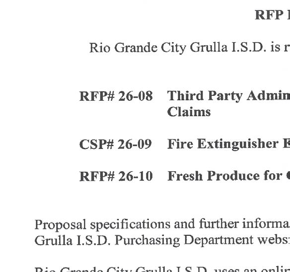 Request for Proposals packages may be obtained by calling (956) 872-4681 or emailing stcpurchasing@southtexascollege.edu