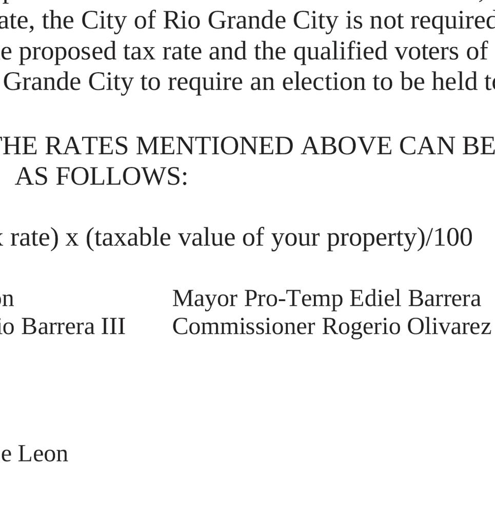The City Council of the City of Rio Grande City, Texas will hold a public hearing on the proposed municipal budget for the fiscal year beginning October 1, 2025 and ending September 30, 2026.