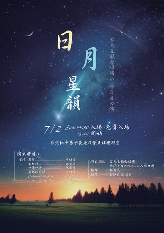歡迎各位蒞臨台大星韻合唱團111學年度年度公演 《(大)日月星韻》。