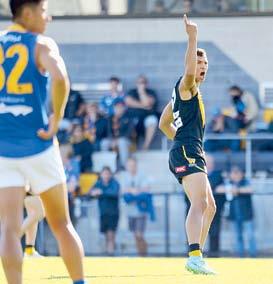 Sam Paea celebrates one of his two goals. (Belinda Vitacca Photography) Werribee
