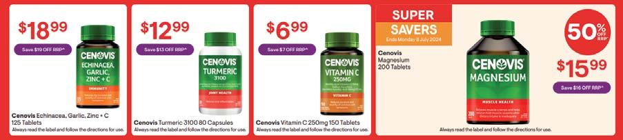 SPECIALS ON SALE FROM 12TH - 26TH JUNE 2024. IN STORE ONLY. AVAILABLE AT PARTICIPATING DISCOUNT DRUG STORES. NOT ALL ITEMS AVAILABLE FROM ALL STORES. FAILURE BY SUPPLIER TO DELIVER OR OTHER UNINTENTIONAL CAUSES MAY RESULT IN SOME ITEMS IN THIS CATALOGUE BEING UNAVAILABLE. UNLESS OTHERWISE STATED ACCESSORIES SHOWN ARE NOT INCLUDED IN THE PRICE. PRICES SUBJECT TO CHANGE WITHOUT NOTICE. WE RESERVE THE RIGHT TO CORRECT PRINTING ERRORS. VALUE CALCULATIONS ARE BASED ON RECOMMENDED RETAIL VALUE AS PROVIDED BY SUPPLIERS. ALL CATALOGUE PRICES ARE GST INCLUSIVE. PRODUCTS MAY VARY FROM STORE TO STORE AND ARE SUBJECT TO AVAILABILITY. ^SAVINGS CALCULATED BASED ON THE RECOMMENDED RETAIL PRICE AS PROVIDED BY THE SUPPLIER AND NOT NECESSARILY PREVIOUS IN STORE PRICE. # ALWAYS READ THE LABEL. FOLLOW THE DIRECTIONS FOR USE. THIS MEDICINE MAY NOT BE RIGHT FOR YOU, READ THE LABEL BEFORE PURCHASE. IF SYMPTOMS PERSIST, TALK TO YOUR HEALTH PROFESSIONAL. INCORRECT USE COULD BE HARMFUL +INCORRECT USE COULD BE HARMFUL *STOP SMOKING AID. OPEN 7 DAYS Tarneit Discount Drug Store Tarneit Central Shopping Centre, 14/540 Derrimut Road, Tarneit 3029 Phone: (03) 9039 6571 tarneit@discountdrugstores.com.au 12681514-MS24-24