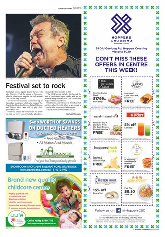 exhausted within minutes in 2017. “The 2018 line-up includes the best of the best of Australian music royalty and we are proud to bring them all to the One Electric Day stage,” Mr McDonald said. One Electric Day will come to Werribee Park on November 25, with tickets to go on sale at 11am on May 18 through Ticketmaster. Details: www.oneelectricday.com.au Charlene Macaulay