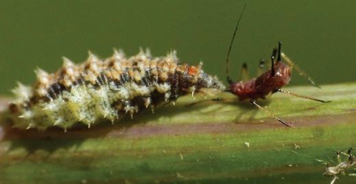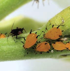 lay their eggs into the bodies of live aphids. The aphid host turns into aphid “mummies,” which look like swollen, brown aphids. Once hatched, the larvae feed on the aphids from the inside out.