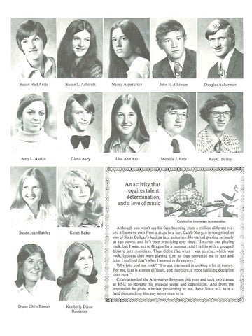 ,:,::, Although you won"t see his face beaming from a million different rec•· ord albums or even from a stage in a bar. Caleb Morgan is recognized as ,,:,, ~ - one of State College"s 1eading jazz guitarists. He started playing seriously :...:< at age eleven. and he's been practicing ever since ... I started out playing ., rock. but I went out to Oregon for a summer. and l fell in with a group of :~~ biza rre jazz musicians. They didn "t like what I was playing. which was ·s; rock. because they were playing jazz. so t hey converted me to jazz and ,. .. . f :_;, later I realized that's what I wanted to do a nyway." [:; Why jazz and not rock? 'Tm not interested in making a lot of money. For me. jazz is a more difficult. and therefore. a more fulfilling discipline ,1\ than rock.'' .~ . Caleb attended the Alternative Program this year and took two classes ~•. at PSU to increase his musical scope and capabilities. And from the impression he gives. whether performing or not. Penn State will have a ,l:,. hard time making him any better than he is.