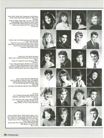 Marrin J. Walsh Baseball, IM Basketball. Sarah Lee Wangsness Tennis (co-capt.), Powderpuff, Softball, Dance Marathon. Job: Meyers Dai.ry. Evan Ware IM Boxing. Job: The Waffle Shop. Sonya Warg Cory Warner Ski Club. Job: Markle's Farm Equipment.