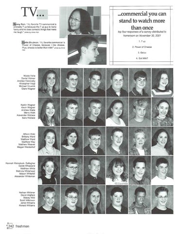 ...commercial you can stand to watch more than once top four responses of a survey distributed to homeroom on November 30, 2001 1. 7 up 2. Power of Cheese