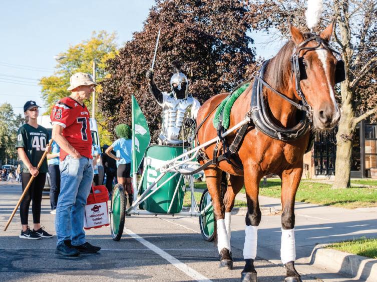 ABOVE: A horse and chariot at the MSU Homecoming Parade on October 1, 2021, on Farm Lane in East Lansing. Photo by Lauren Snyder