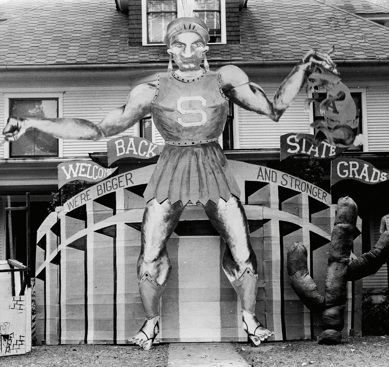 A cutout of what appears to be a Spartan holding a hammer and a dead rodent is staged in front of an East Lansing house homecoming weekend in 1948. According to the Big Ten website, Michigan State College (now MSU) would be added to the Big Ten Conference the following year. State News File Photo CAMPUS TUESDAY, OCTOBER 11, 2022THE STATE NEWS4 PHOTO 1. Open your MSUFCU account. 2. Make 10 debit card purchases. 3. Receive $100. msufcu.org | 517-333-2424 | Visit a branch Offer of $100 valid 5/1/22 to 10/31/22 for those who qualify under the MSU student SEG. MSUFCU account must be activated by 10/31/22 and 10 debit card purchases must post within 30 days of card activation to qualify. The $100 will be deposited into member’s checking account within 6 weeks of the 10th purchase. Not valid for existing members with an MSUFCU checking account. May not be combined with any other deposit offers. If new member is referred to the Credit Union, member referral offer will not apply. CLAIM YOUR $100 We CU SHOWING YOUR SPARTAN SPIRIT.