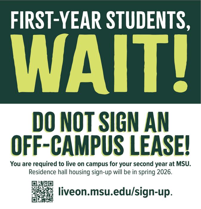 At Michigan State University, frst and secondyear students, with some exceptions, are required to live in on-campus housing.