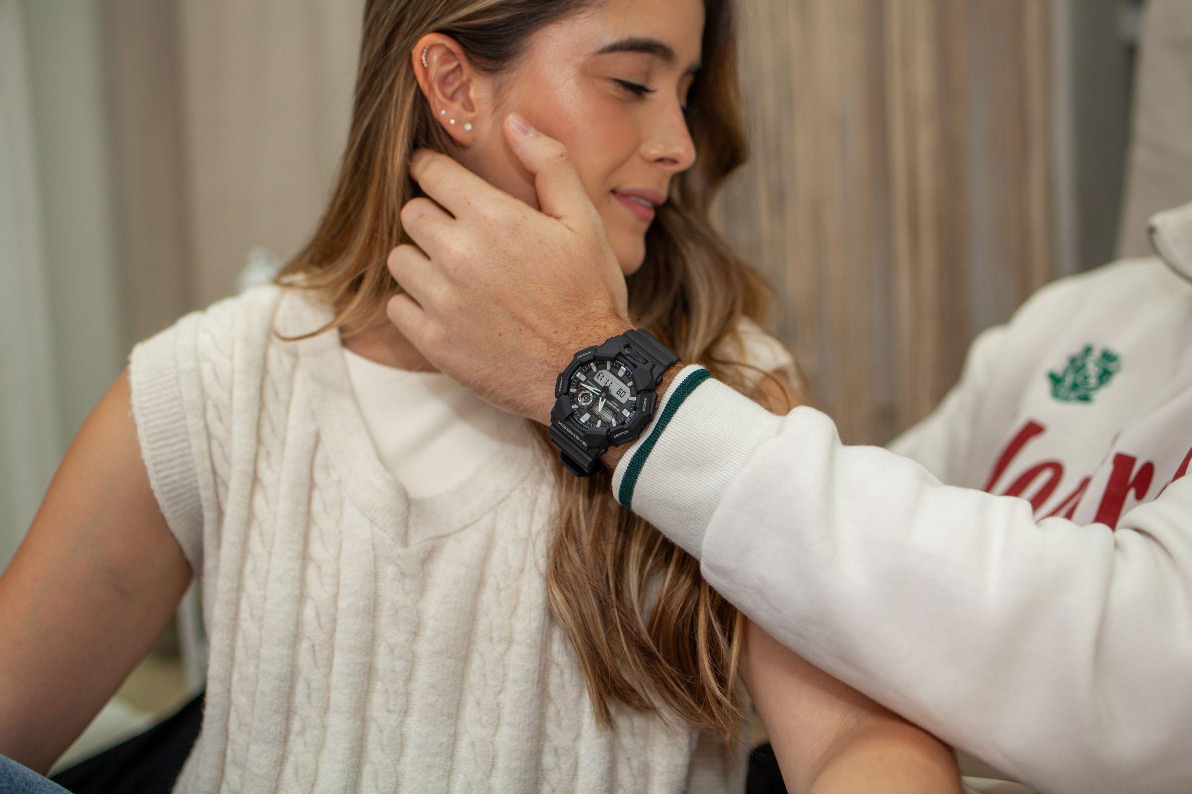 El diseño de la esfera se asemeja al instrumental de la cabina de un avión.