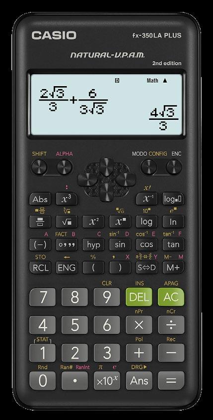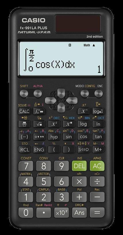 Entre sus principales funciones se encuentran: hoja de cálculo, matrices y determinantes, resolución de ecuaciones, números complejos, funciones trigonométricas, derivadas, estadística y conectividad con smartphone. ¡Una herramienta completa para tus estudios!