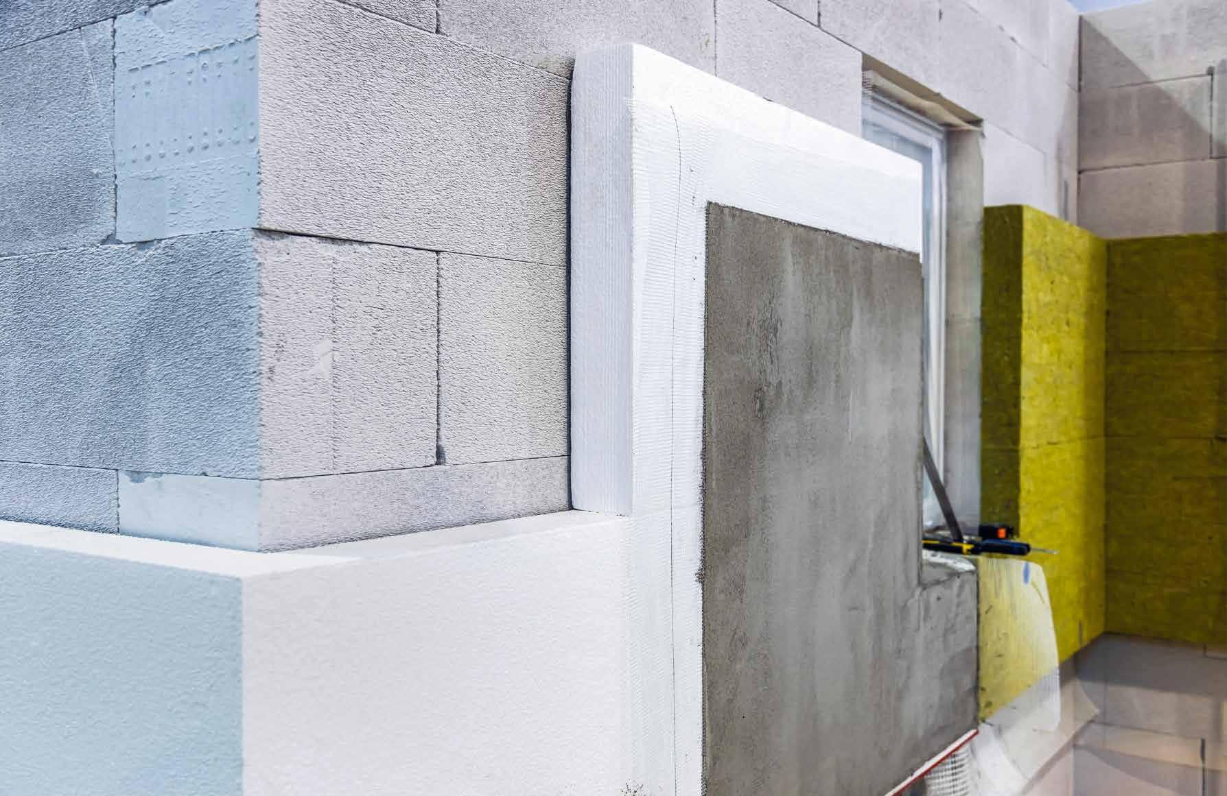 blokelių mūrijimo, cokolio ir išorinės sienos apšiltinimo darbų ir armuojamojo sluoksnio įrengimo bei dekoratyvinio tinko uždėjimo procesuose.