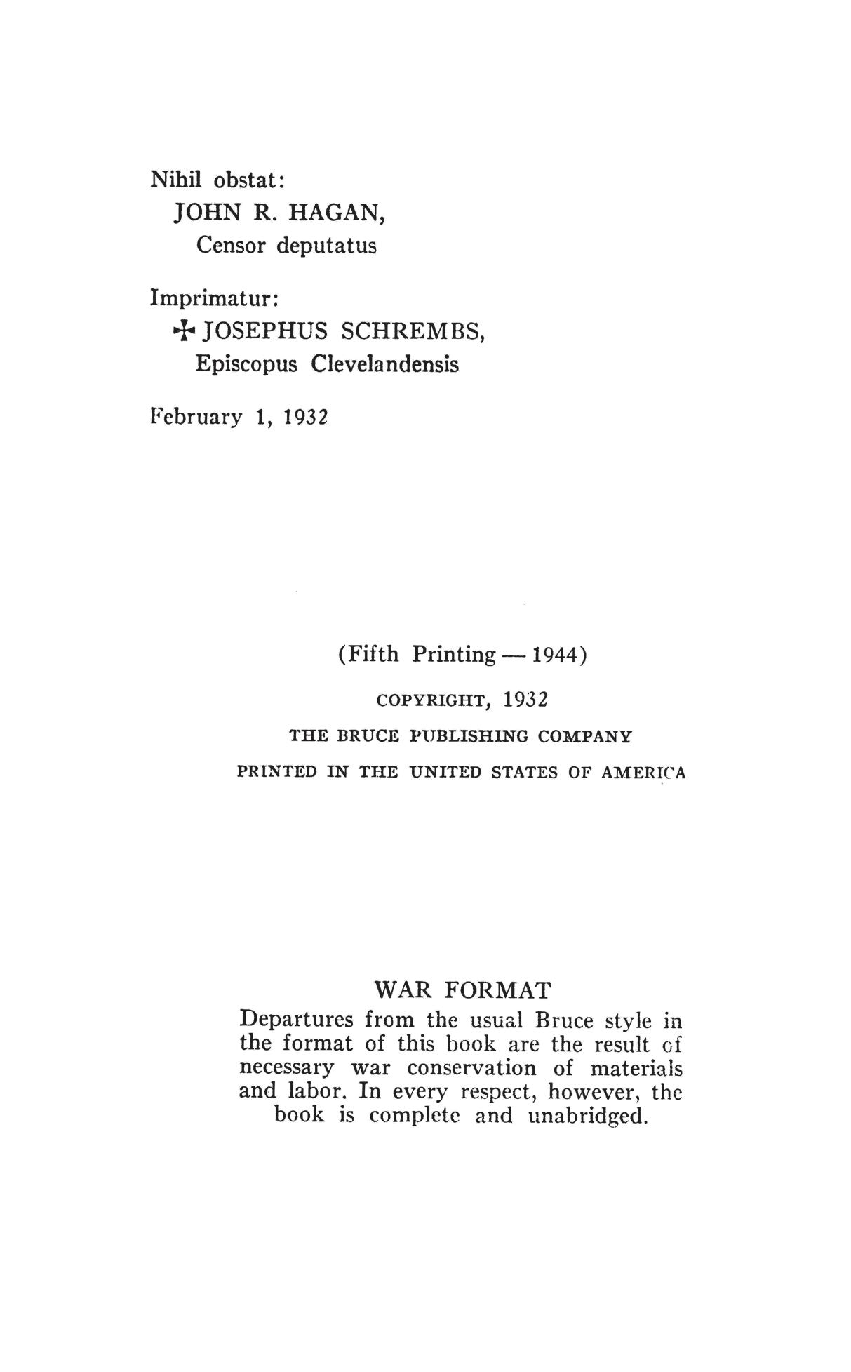 This book was originally published in 1932 by The Bruce Publishing Company.