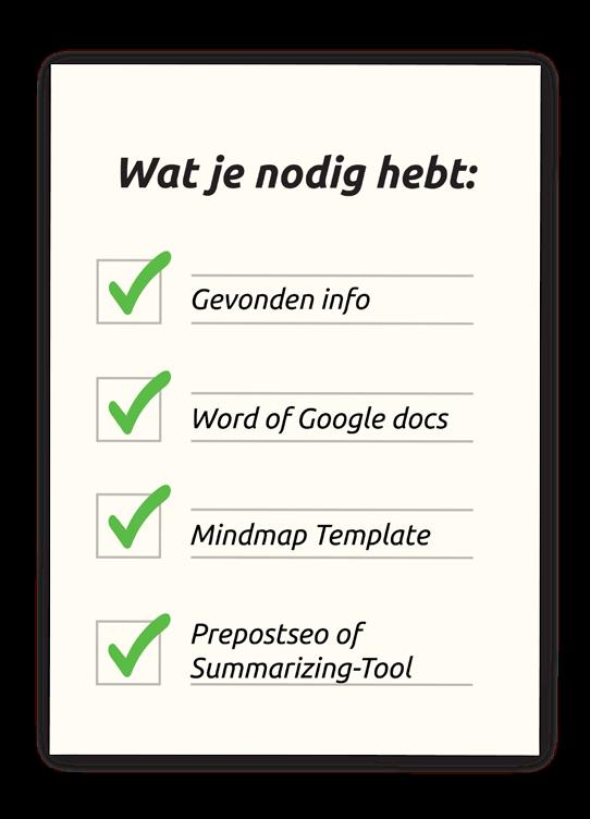 Informatie bundelen betekent niks anders dan het samenvoegen van informatie. Je start met bundelen door het maken van een korte samenvatting of een mindmap van de informatie die je in de bron gevonden hebt. Er zijn verschillende tools die je hierbij kunnen helpen. Denk bijvoorbeeld aan Prepostseo en Summarizing-Tool. Microsoft1 biedt de optie ‘object’ in Word. Deze optie maakt het mogelijk om verschillende werkbladen samen te voegen.