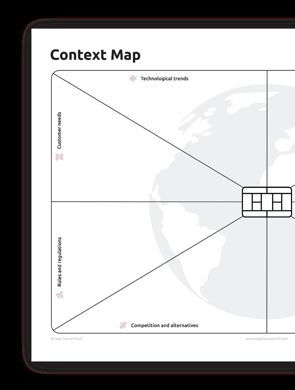 Stay Future Proof heeft deze Context Map zo aangepast dat deze nu bestaat uit 6 categorieën: