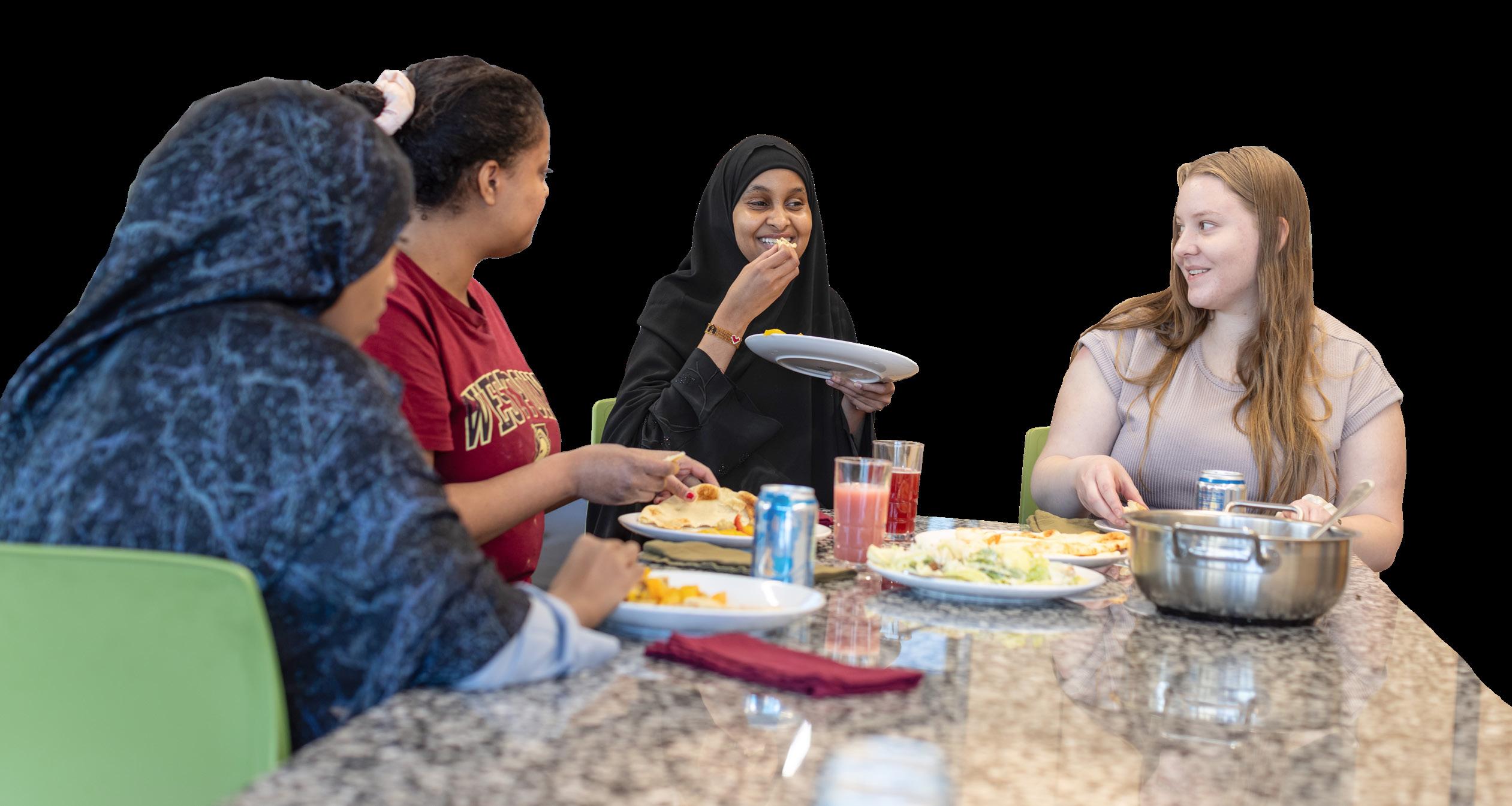 CLOCKWISE FROM RIGHT: PHILLIPS SCHOLAR NIMO MOHAMED ’23 DEVELOPED PROGRAMMING TO ADDRESS NEEDS IN HER COMMUNITY. THE FALL 2024 EVENT IN THE WOMEN OF COLOR LEADERSHIP SERIES FEATURED A ROUNDTABLE CAREER DISCUSSION WITH MINNESOTA-BASED, BIPOC WOMEN. STEM STUDENTS LEAD FAMILY-FRIENDLY ACTIVITIES IN MENDEL BEFORE “THE MOTH PROJECT” AT THE O’SHAUGHNESSY.