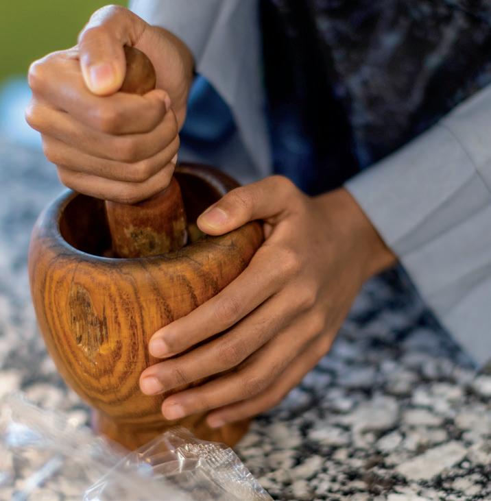 AT RIGHT, ELDER PARTICIPANTS IN MOHAMED’S PROGRAMMING TAKE PART IN GENTLE WALKS, CONVERSATION, AND COMMUNITY GARDENING.