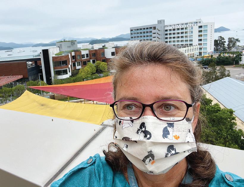 5. Keren Lovett (1993) visiting St Cat’s in March 2022 to talk to Medical Staff about covid prevention measures in place