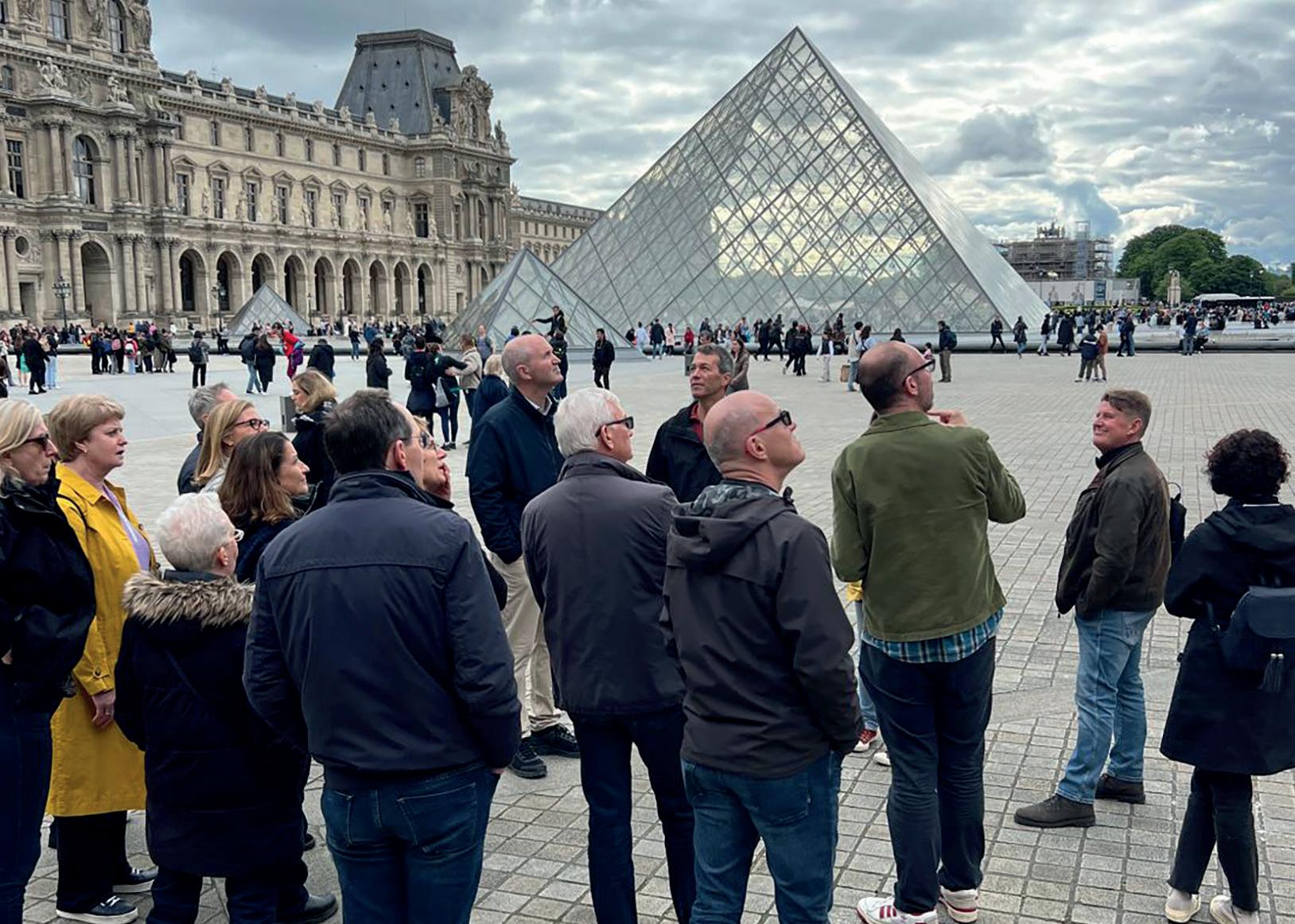 19 current and former parents and staff joined the Association Trip to Paris on the first May Bank holiday this year. Leaving on an early Eurostar from London we arrived in Paris on Saturday, and immediately headed off to the Châtelet area for lunch followed by a visit to the Centre Pompidou. Under the direction of Alex Perry-Adlam (Head of Art), we learned about the iconic ‘inside-out architecture’ of the building itself, and the importance of the modern artworks in the main collection including works by Kandinsky, Matisse, Chagall, Klein, Miro and Picasso.