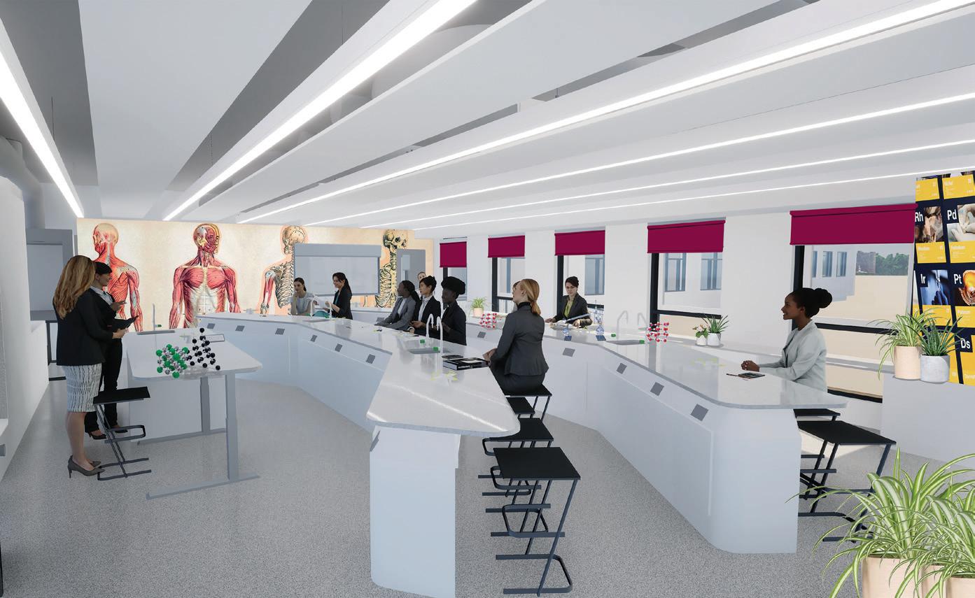The Phase 1 build prioritises work in the existing School Block, creating the new Community Lab and a Physics Lab. The Community Lab will be a ‘super-Lab’ and has been designed specifically to accommodate both Prep and Senior outreach activity. This laboratory will allow us to host Summer Science Camps, Coding Workshops and Science teacher training activity, building on the work that has already begun in the Prep School WonderLab. During the School day the Lab will be used by Middle and Senior School girls for core curriculum work and extra-curricular clubs such as Dissection Club, Astrophysics Club, Maths Challenge and the Sixth Form Medical Reading Club.