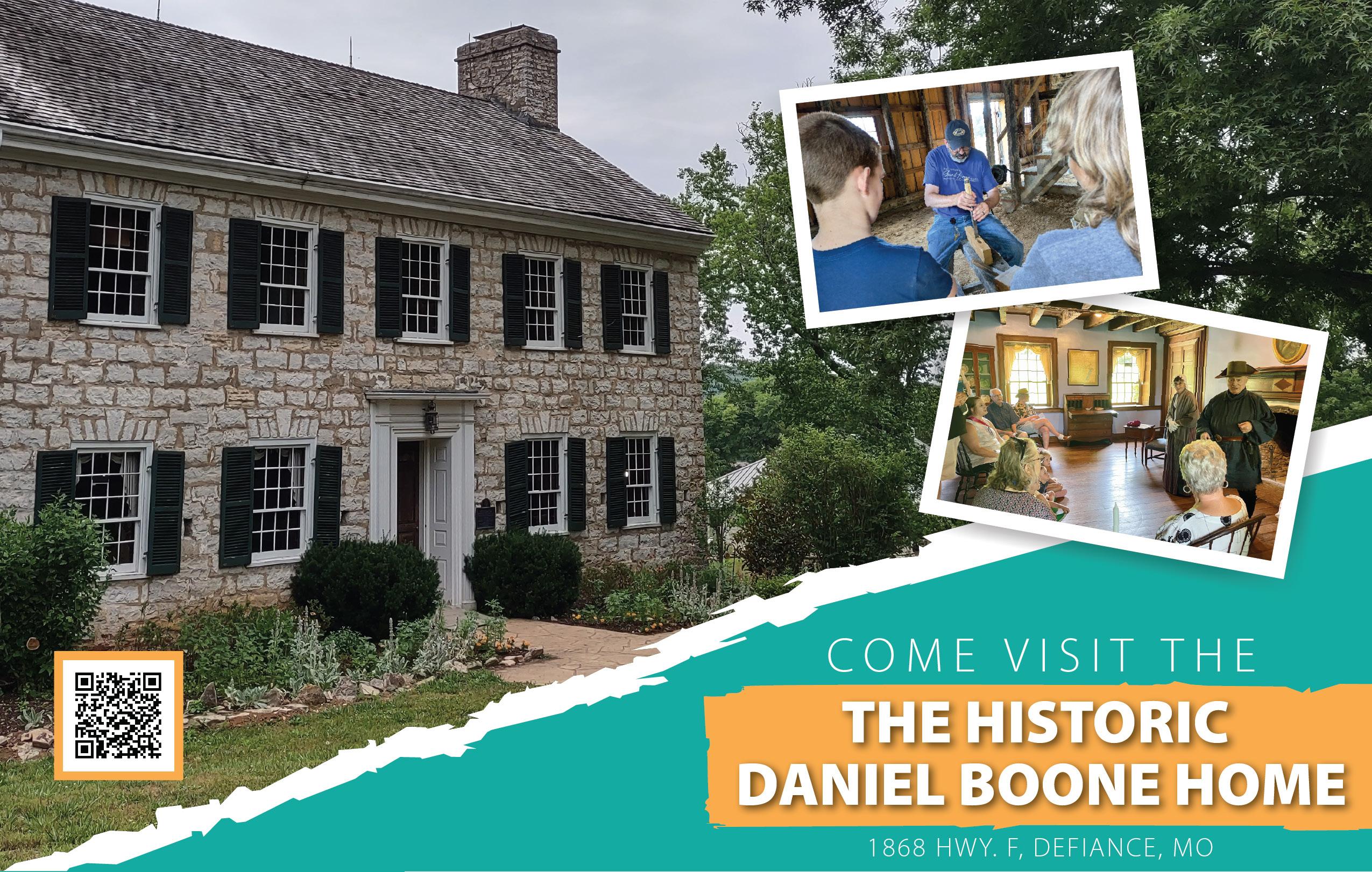 Meet Daniel Boone and his wife Rebecca, as played authentically by famous historical actors. Tour the historic home where the Boones once lived, and meet and visit with these famous Missourians portrayed by Colonel Robert Pecoraro and his wife, Shirley, National Association for Interpretation Volunteer Award winners. Daniel and Rebecca’s lives were filled with joy, happiness, hardship, and tragedy, yet they survived and persevered as partners for 56 years. The interpreters discuss life on the frontier and show you a collection of original antique weapons and accoutrements from the French and Indian War and the Revolutionary War. Admission to the Boone Home is $8 for adults, $6 for seniors ages 60 and up, and $5 for children ages 5–12. Active and retired military and children 4 and under are free.