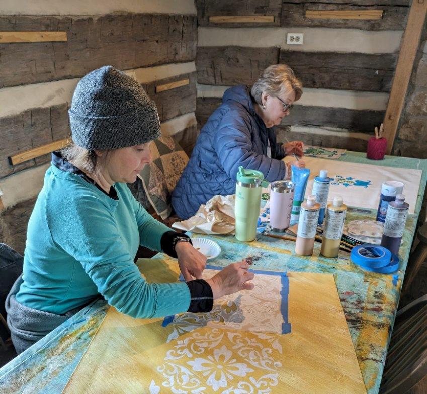 After studying historic designs of floor cloths and their uses in the 18th century, participants can draw out designs and transfer them to canvas to make their own modern versions. These designs can range from simple to intricate. Canvas, brushes, and acrylic paint are provided in a limited pallet. Please dress in clothes that can be paint stained. Pre-registration is required.