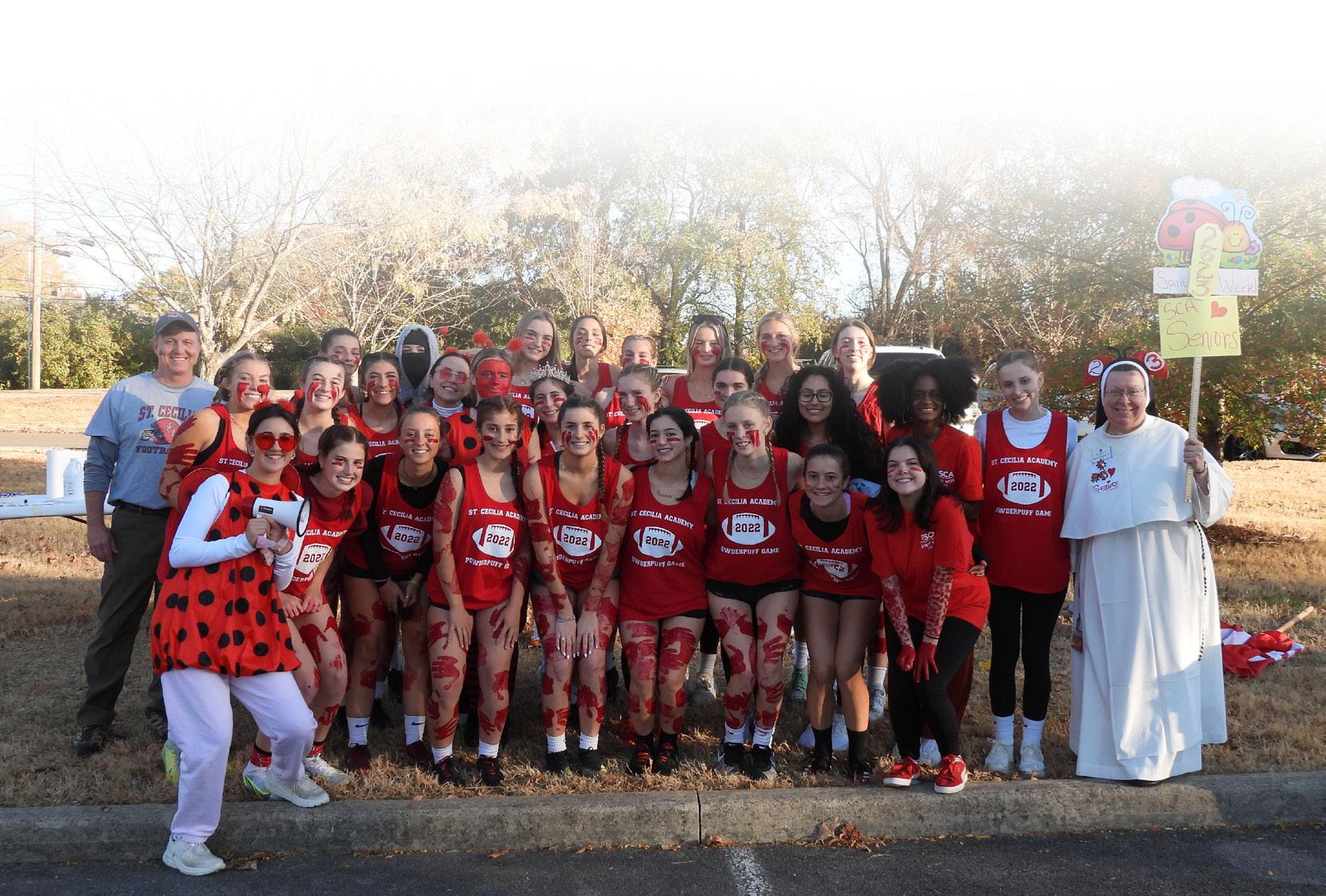 This is one of the students’ favorite weeks of the year and is held in the fall. Student leaders plan themes for each day and each class rallies around a class theme. Recent daily themes include Movie Monday, Tennessee Tuesday, Western Wednesday, and Class Theme Thursday. The students are out of uniform all week if they dress according to the theme days. Costumes are very creative, and daily winners earn prizes. The week culminates on Friday with Spirit Day (noon dismissal), a day full of class competitions, outdoor games, and events that end with the announcement of the winning class of Spirit Week.