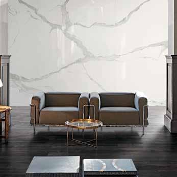 Porcelain large-format (5 ft. x 10 ft.) allows for considerable areas to be covered without seams. Vein-matching, book-matching, and large continuation of patterns are easily produced without excessive waste, while grout lines and unsightly countertop seams are non-existent.
