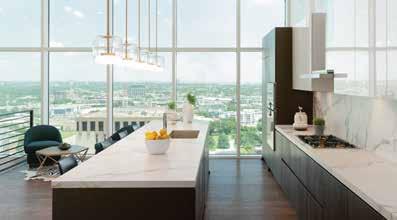• Moderno’s proprietary assembly method for countertops and surfaces, combining NASA’s honeycomb core, fiberglass and aluminum with an all-climate bonding and seal technique, makes our countertops the strongest in the market, delivering: