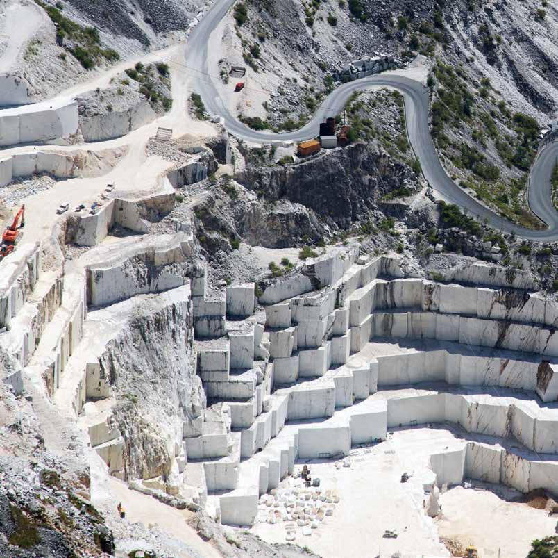 Uses different faces of the porcelain panels that will, when placed adjacent to one another, match up to create continuous veins