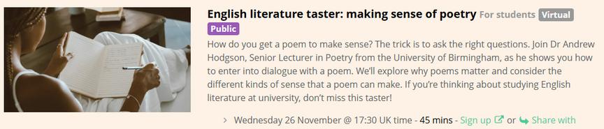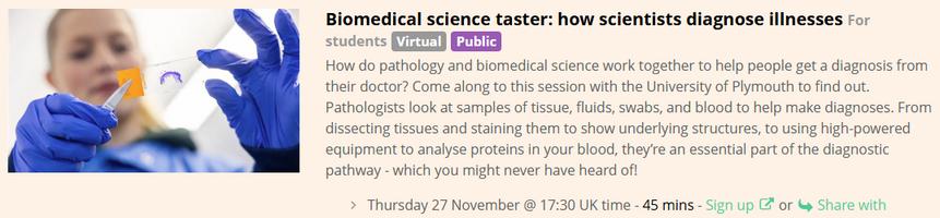 Wednesday 26th November, 6-7pm: Come along to this virtual session to learn more about the process of Applying to Medicine at the University of Leicester. From choosing the right university, to understanding the entry requirements (including the need for work experience, the UCAT and MMIs), visit our website for more information and how to sign up to attend.