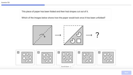 Testing visual and spatial skills to measure raw reasoning ability and abstract thinking
