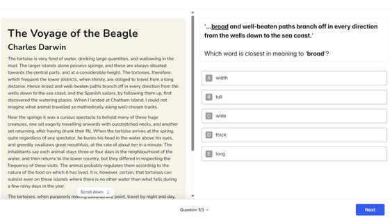 The text and questions used in this part will be unique to St. Columba’s College.