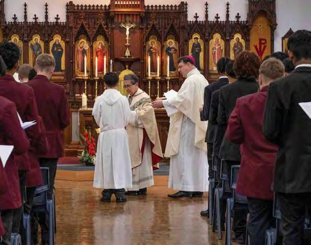 Following the Mass, the Nuncio blessed the school’s newly completed dining room dedicated to St Benedict, designed by Howarth Litchfield Architects, and built by Meldrum Construction. Headmaster Mr Murray spoke of St Benedict’s teaching on hospitality: “Let all guests who arrive be received as Christ.” He told the boys, “You deserve the best because you are made in the image of God.”