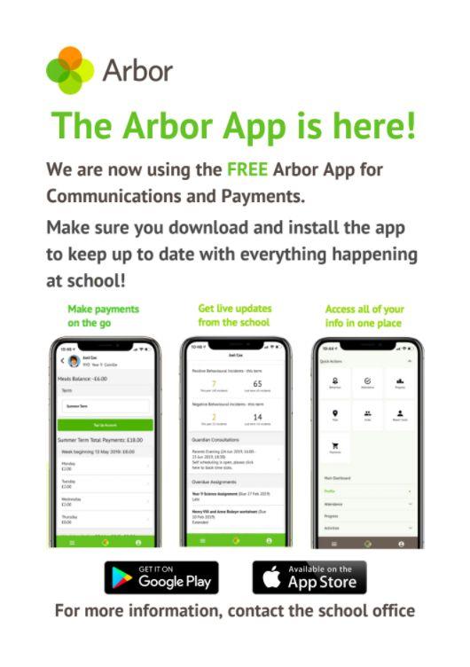 Arbor is a simple, smart and cloud-based MIS (Management Information System), which helps us work faster, smarter and more collaboratively as a school. The Parent App and Parent Portal mean we can keep you informed about your child’s life at school in a much more accessible way. Log into Arbor to see and update your child’s information, get live updates and make payments or bookings on the go!