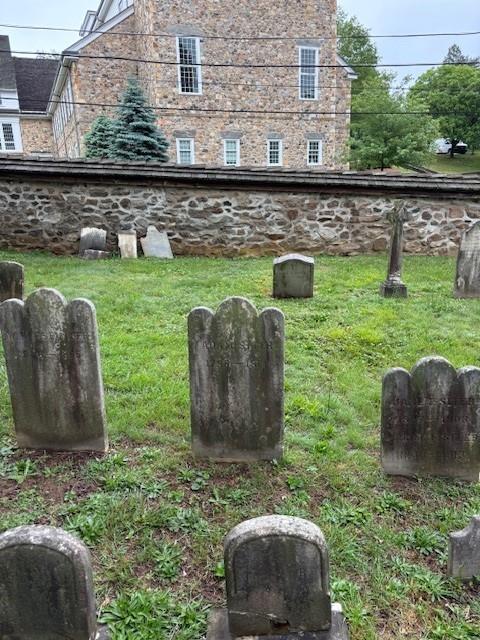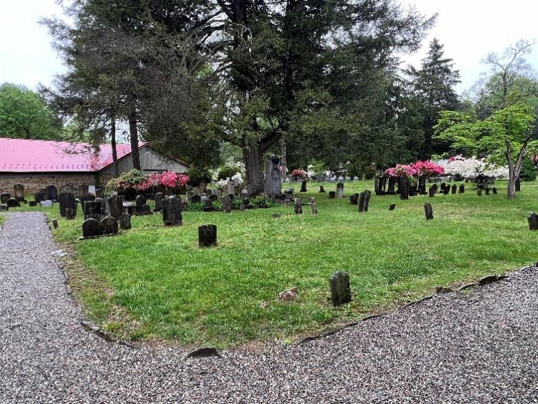 A headstone among the grouping marks the grave of Francis Wayne and his wife, Elizabeth. Francis emigrated with his father, Capt. Anthony Wayne, and his brother, Isaac.
