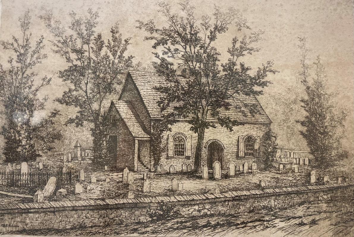 The grave of Edward Hughes lies to the right after entering the Churchyard. A local fieldstone and plaque now mark the site of his grave, the first parish burial in December 1716. Sadly, his gravestone, which came from London and would have served as ballast for the ship crossing the Atlantic Ocean, has gone missing, but a rubbing exists created in 1926 and is featured above. Henry Pleasants tells us that Edward Hughes “was Rector of the Church as early as 1704.”