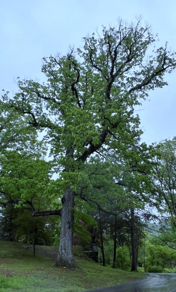 From the southwest corner of the Churchyard wall stands the last of a trio of White Oak trees (Quercus Alba). In 2014, one of the two remaining trees was cut down; the growth rings of the stump were counted indicating that the tree was approximately 375 years old. William Black, a parishioner, told us that given its age, the tree would have qualified as a “William Penn Tree”, signifying that it was alive when Pennsylvania was founded by William Penn in 1682.