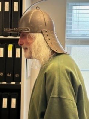 Michael Merrick wearing a helmet similar to those worn by Captain Anthony Wayne and John Hunter during the Battle of the Boyne.