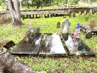 The center tablet marks the grave of Isaac Wayne along with Isaac's daughter, Ann. Isaac was the father of the renowned Major General Anthony Wayne.