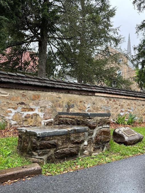 The mounting block sits directly in front of the south or front wall. It was constructed in 1776 during the Revolutionary era by Jonathan Hughes using local fieldstone capped with Valley Forge Bluestone. It aided in the mounting and dismounting from horses and carriages when members of the congregation came to attend services. Records indicate that 3 Shillings 6 Pence was paid for “making horse block”.